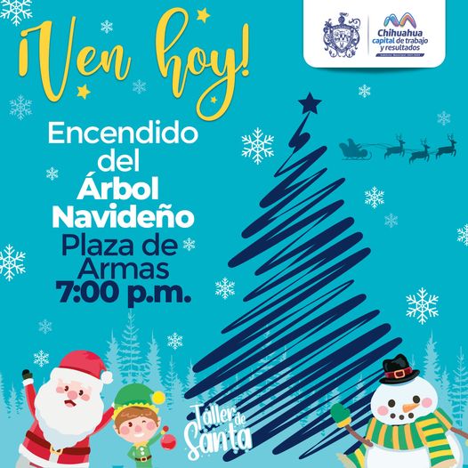 Con el objetivo de conmemorar las épocas navideñas, el Gobierno Municipal de Chihuahua, envió a la ciudadanía a través de sus redes sociales, al encendido del Árbol Navideño de Plaza de Armas, el cual se llevará a punto de las 19:00 horas.