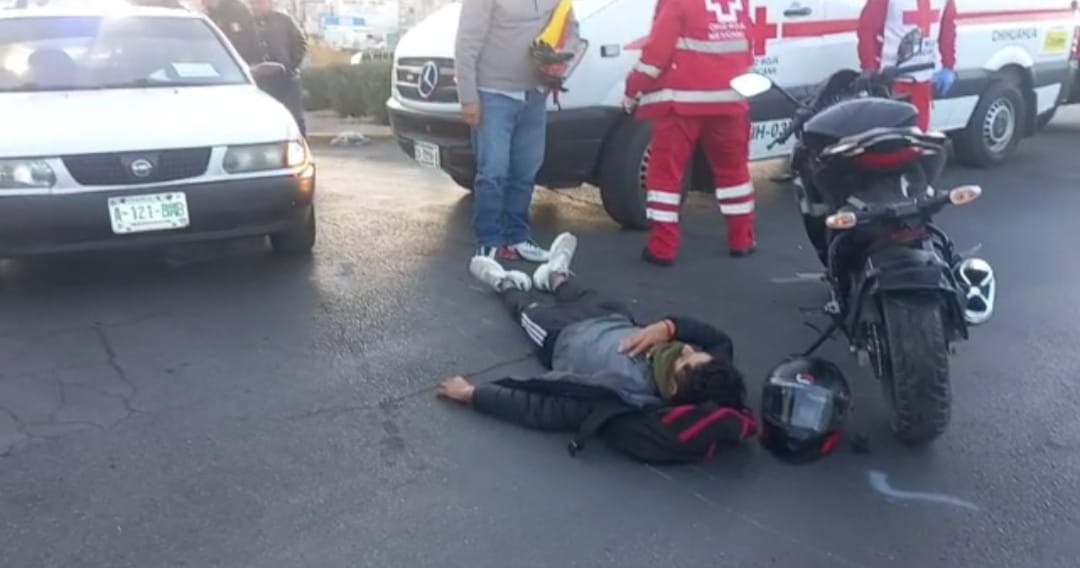 Un accidente vial se presentó en el cruce de las calles Monte Albán y Heroico Colegio Militar donde un motociclista quedó con lesiones al ser impactado por un vehículo del sitio Galatea lo que alertó el numero de emergencia.