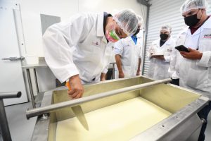 En este curso-taller que fue de manera presencial, pero respetando el cupo estipulado por el sector salud, cada participante aprendió sobre técnicas, procedimientos y metodologías para aumentar la calidad en la producción de quesos frescos con leche en polvo descremada y grasa butírica.