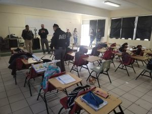 Con el fin de combatir las incidencias delictivas en los planteles educativos, la Agencia Estatal de Investigación (AEI), a través del Grupo de Orientación Escolar Chihuahuense (GOECHI), así como personal y elementos caninos del K9, implementaron durante esta semana, la aplicación del programa de intervención para la Prevención y Protección de la Comunidad Escolar, en diversos planteles de nivel secundaria en Ciudad Juárez.