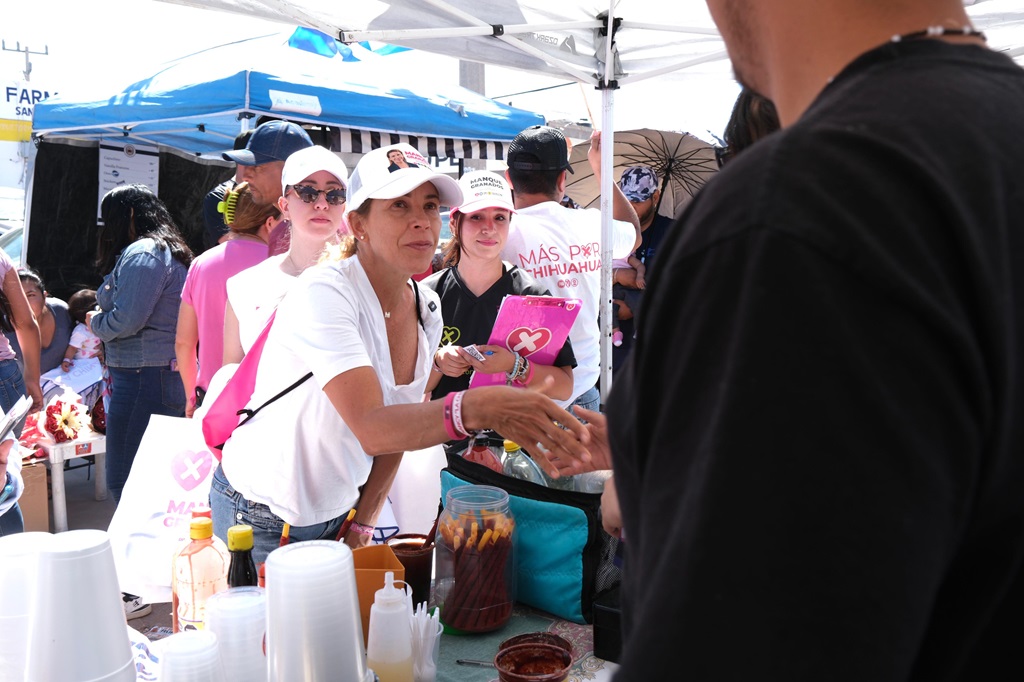 Reunida con integrantes del Club Rotario Chihuahua Campestre, Manque Granados Trespalacios, candidata por el Sexto Distrito Federal por la coalición Fuerza y Corazón por México, a lado de su compañera de fórmula, Ale Enríquez, refrendó su compromiso para generar las condiciones que propicien el crecimiento de emprendedores y micro, pequeños y medianos empresarios (MIPYMES), y con ello, impulsar la economía de las familias chihuahuenses.