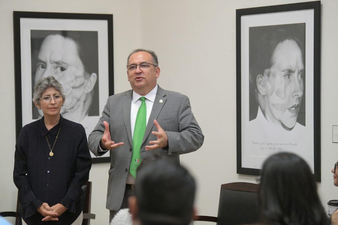 Con la finalidad de fomentar la identidad y el sentido de pertenencia a la universidad, el rector de la UACH, Maestro Luis Alfonso Rivera Campos, inició y encabezó la primera sesión del ejercicio «Clase en Rectoría» en presencia de los 15 directores de las facultades, junto con ellos alumnos con promedio más destacados de cada una.