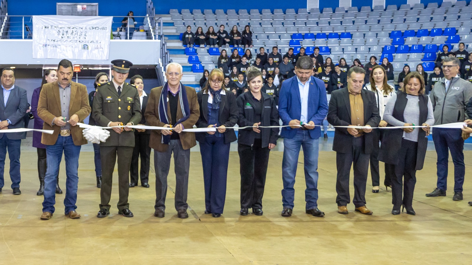 Cd. Cuauhtémoc, Chih.- El presidente municipal Beto Pérez participó en el evento inaugural de la quinta Feria Vocacional de Educación Media Superior, en la que participan 8 instituciones, 3 centros de capacitación para el trabajo, la Academia de la Policía Municipal y el Segundo Batallón de Infantería.