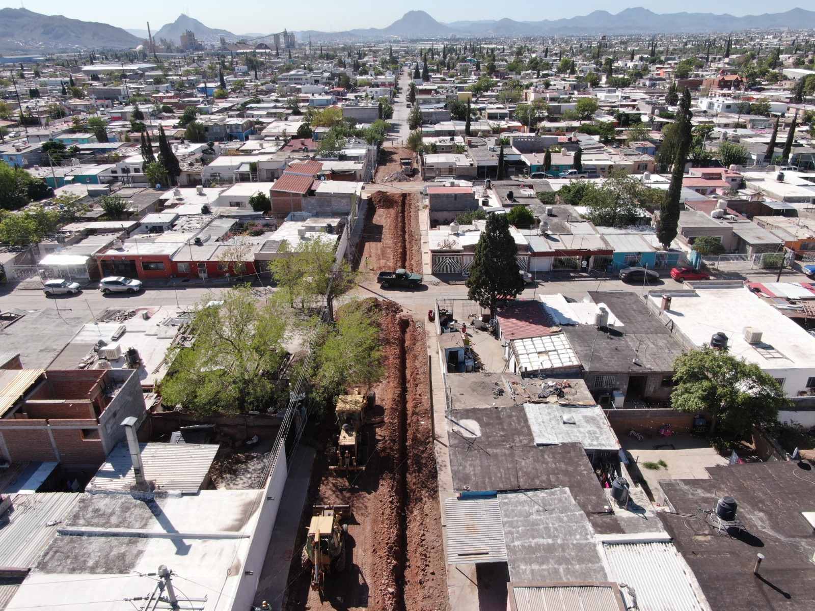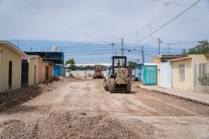 Con una inversión de 6 millones 806 mil pesos, se trabaja en la pavimentación de las calles América Latina, Dorados y Unidad entre calle Ernesto Espinoza y Lázaro Cárdenas, donde se realizan labores de excavaciones, rellenos, compactaciones y conformación de la base hidráulica.