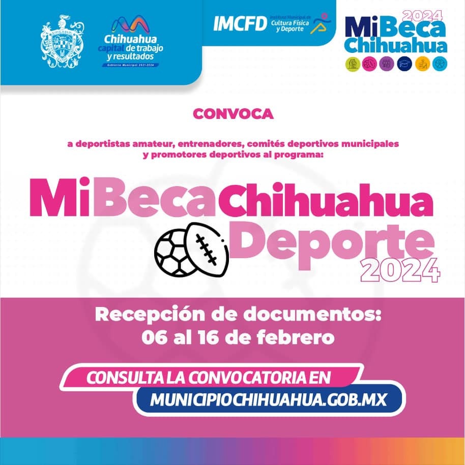 La convocatoria de “Mi Beca Chihuahua Deporte” se encuentra disponible en la página del Gobierno Municipal de Chihuahua, www.municipiochihuahua.gob.mx/ccs/convocatorias.