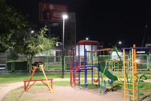 El Gobierno Municipal, a través de la Dirección de Mantenimiento Urbano, modernizó el alumbrado público del parque Aventura, ubicado en las inmediaciones de la avenida La Cantera, para mejorar la visibilidad y seguridad de los usuarios.