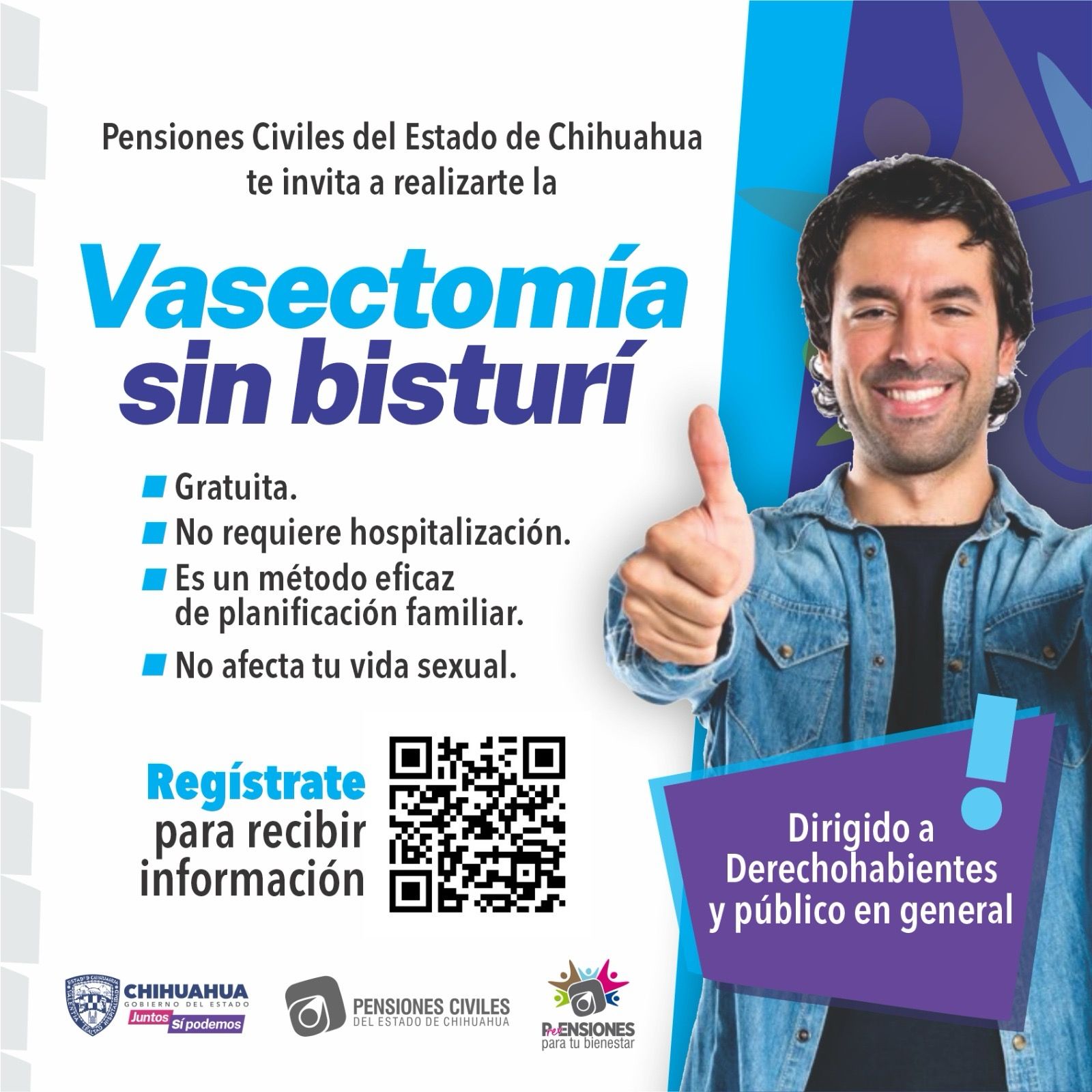 Con el objetivo de promover la salud reproductiva en los hombres, Pensiones Civiles del Estado (PCE) invita a realizarse la vasectomía sin bisturí del 20 de febrero al 31 de marzo, un método eficaz y definitivo de planificación familiar.