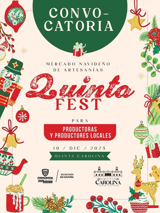 El Centro Cultural Quinta Carolina lanzó su convocatoria para el ‘Mercado Navideño de Artesanías’, dirigido a empresarios locales, que se realizará dentro del marco de la ‘Quinta Festo 2023’.