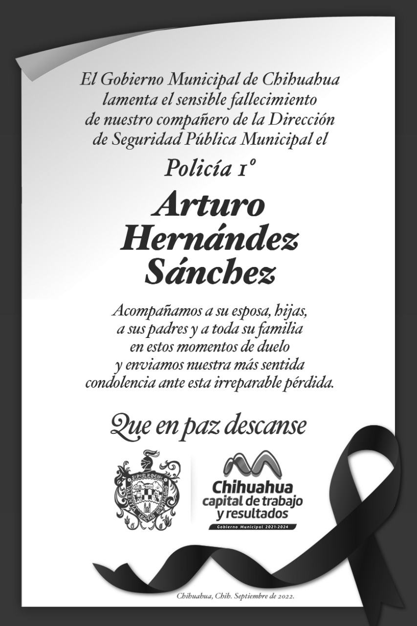 Ante los hechos ocurridos esta mañana, en la colonia Alamedas, donde el Policía Primero Arturo Hernández Sánchez perdiera la vida, el Gobierno Municipal lamenta profundamente el fallecimiento del elemento y expresa sus condolencias a sus familiares, amigos y a los compañeros en la corporación municipal.