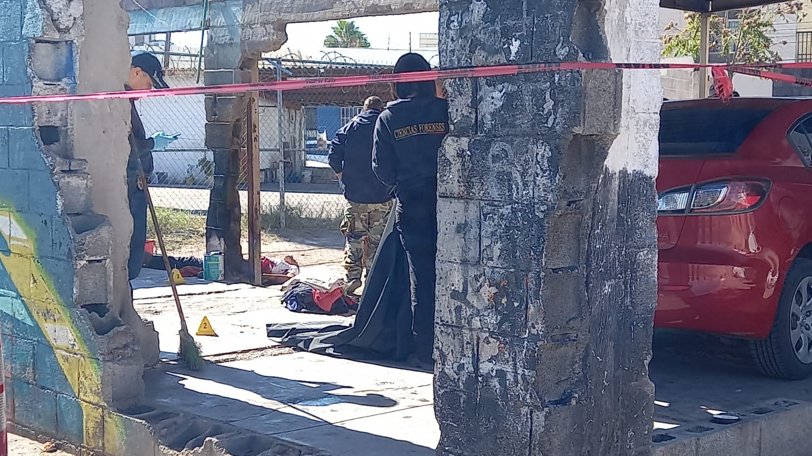 Fue en un terreno utilizado como estacionamiento público en donde quedó el cadáver del hombre con vestimenta pantalón negro, zapatos de trabajo y playera blanca la cuál se encontraba totalmente manchada de sangre a consecuencia de las heridas punzo cortantes por lo que personas que pasaban llamaron al número de emergencia.