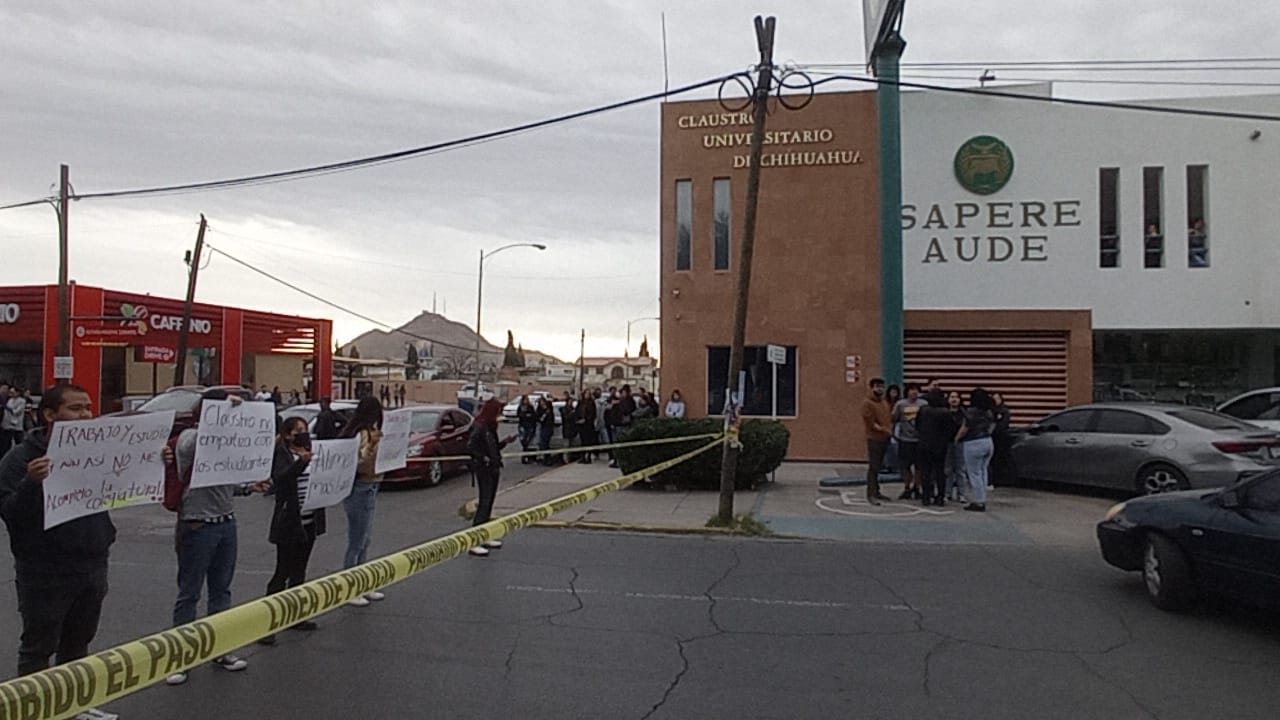 Está mañana alrededor de 60 alumnos del Claustro Universitario hicieron una manifestación con el bloqueo de la División del Norte ante el aumento en la colegiatura de $700.00 más.