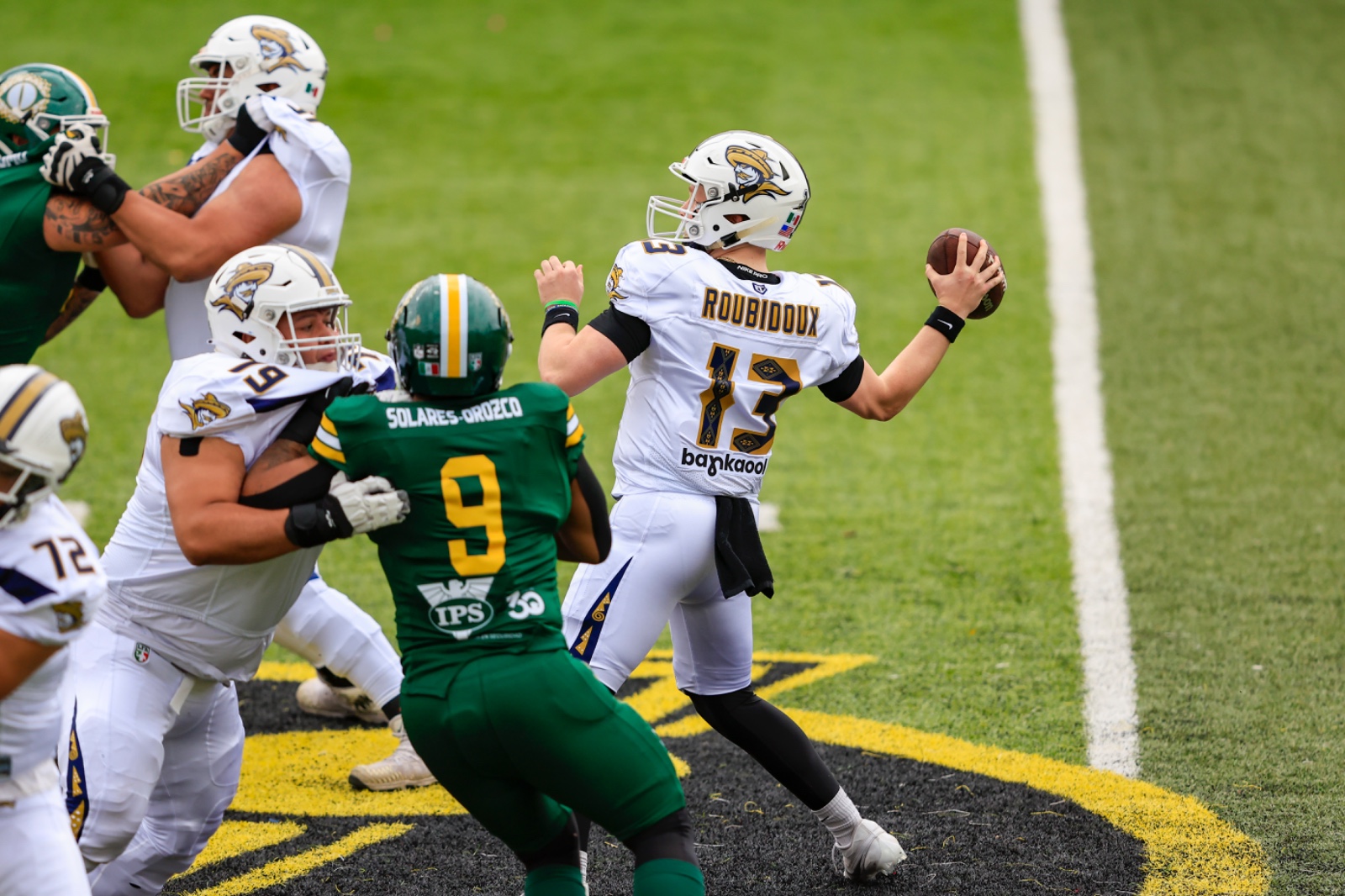 Emmanuel Harris, destaca en la categoría de Receptores, como segundo lugar en el liderato de yardas, con apenas 13 recepciones suma un total de 265 yardas, con tres anotaciones y una conversión en su cuenta personal.