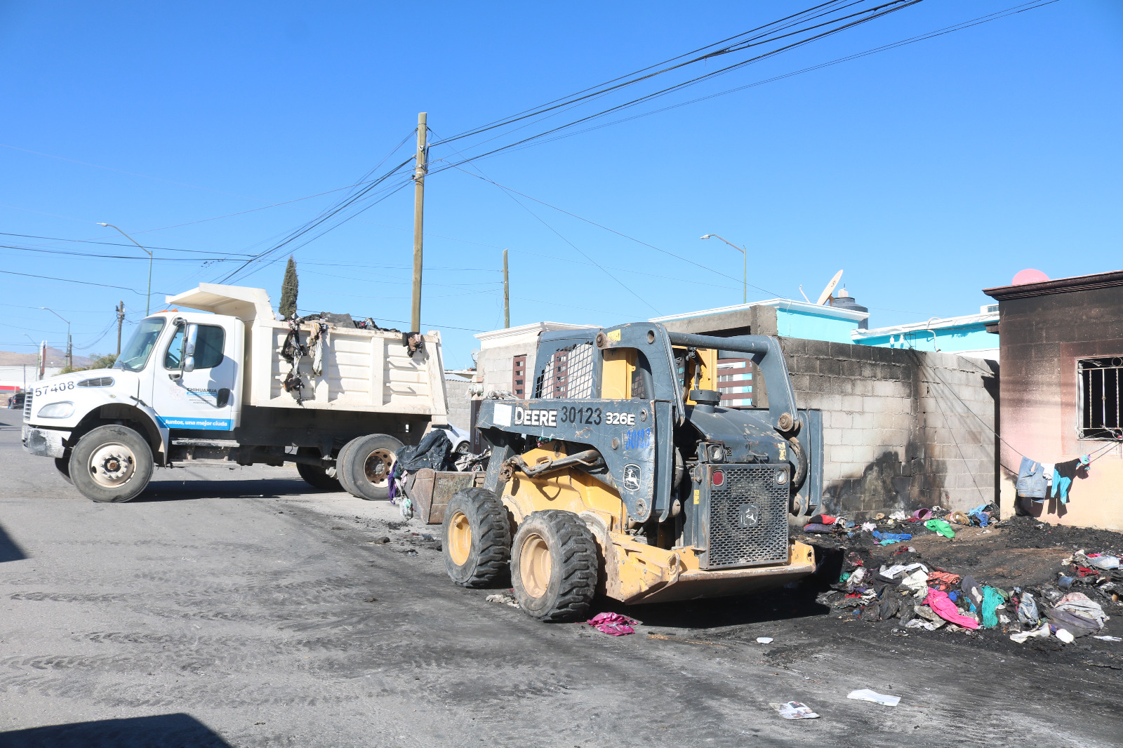 Lo anterior, en un domicilio ubicado en la calle Río Paraguay, donde personal de la Dirección de Servicios Públicos Municipales retiró un estimado de 5.5 toneladas de basura y tiliches quemados, solo del exterior de la vivienda.