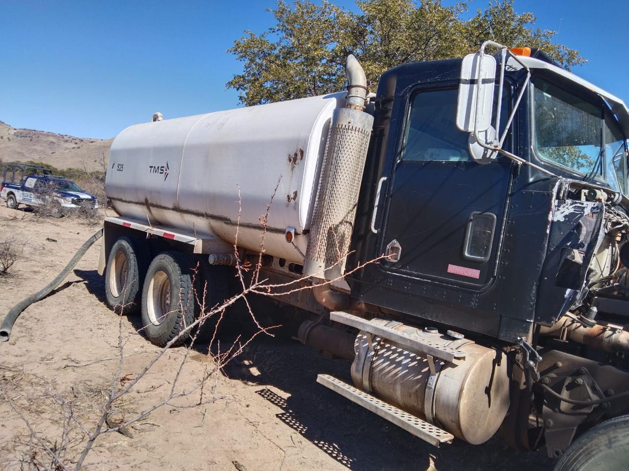 Se trata de dos vehículos cisterna o pipa, de las marcas Freightliner y Kenworth respectivamente, los cuales fueron ubicados abandonados en las inmediaciones del arroyo El Sauz, en el ejido antes mencionado.
