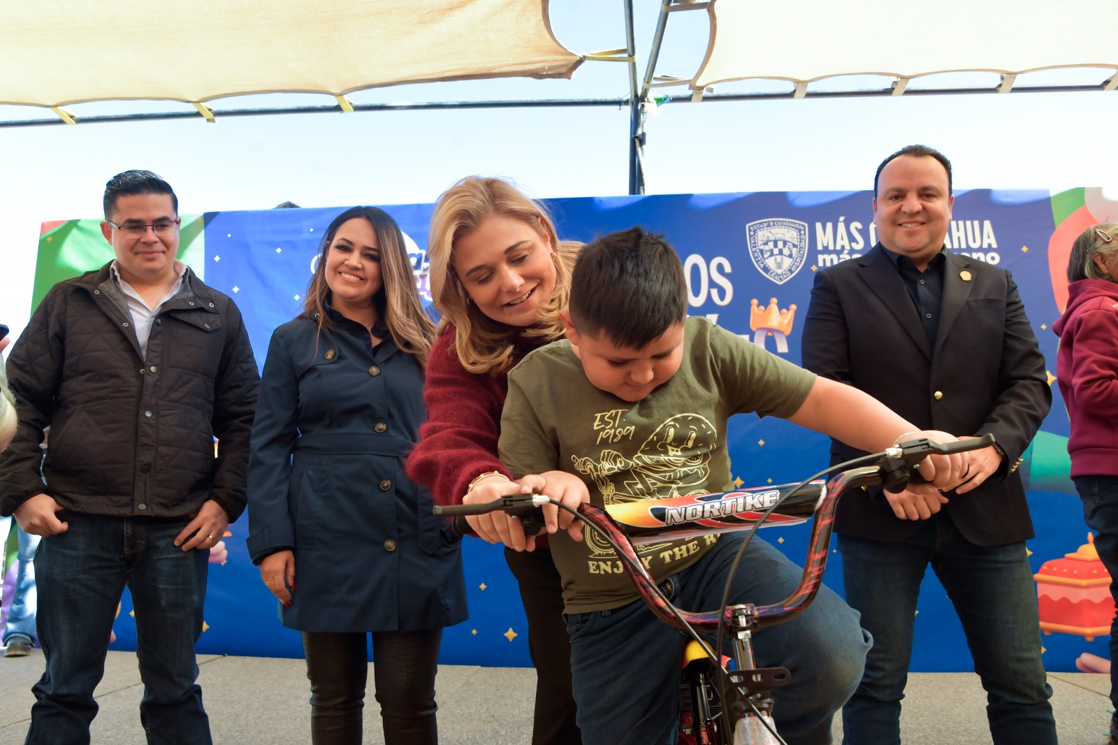 Como parte de la convivencia, la Gobernadora entregó de bicicletas, balones y juguetes diversos a las más de 70 niñas y niños que se dieron cita, a quienes animó a sembrar la paz y el amor entre sus familias desde temprana edad.