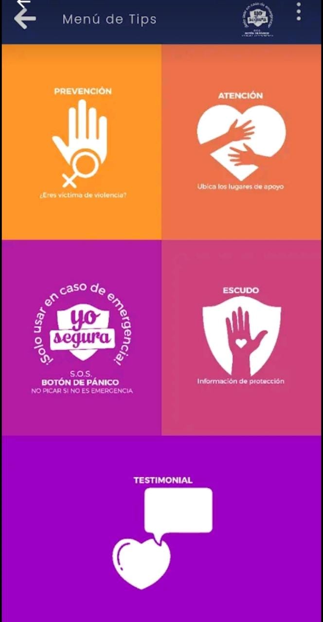 Además Yo Segura cuenta con otra sección en donde se muestran consejos para la misma utilización de la aplicación, un recuadro naranja con la descripción de los tipos y niveles de violencia de las que puede ser una mujer, con la intención de identificar si una fémina se encuentra en situación vulnerable.