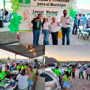 El Partido Verde Ecologista de México, cerró sus actividades proselitistas con una caravana vehicular y un concierto musical realizados en la cabecera municipal de Manuel Benavides, donde Leonel Galindo Carrasco, candidato a la Presidencia Municipal, reunió a más de mil personas y a quienes les pidió refrendar su apoyo en las urnas.