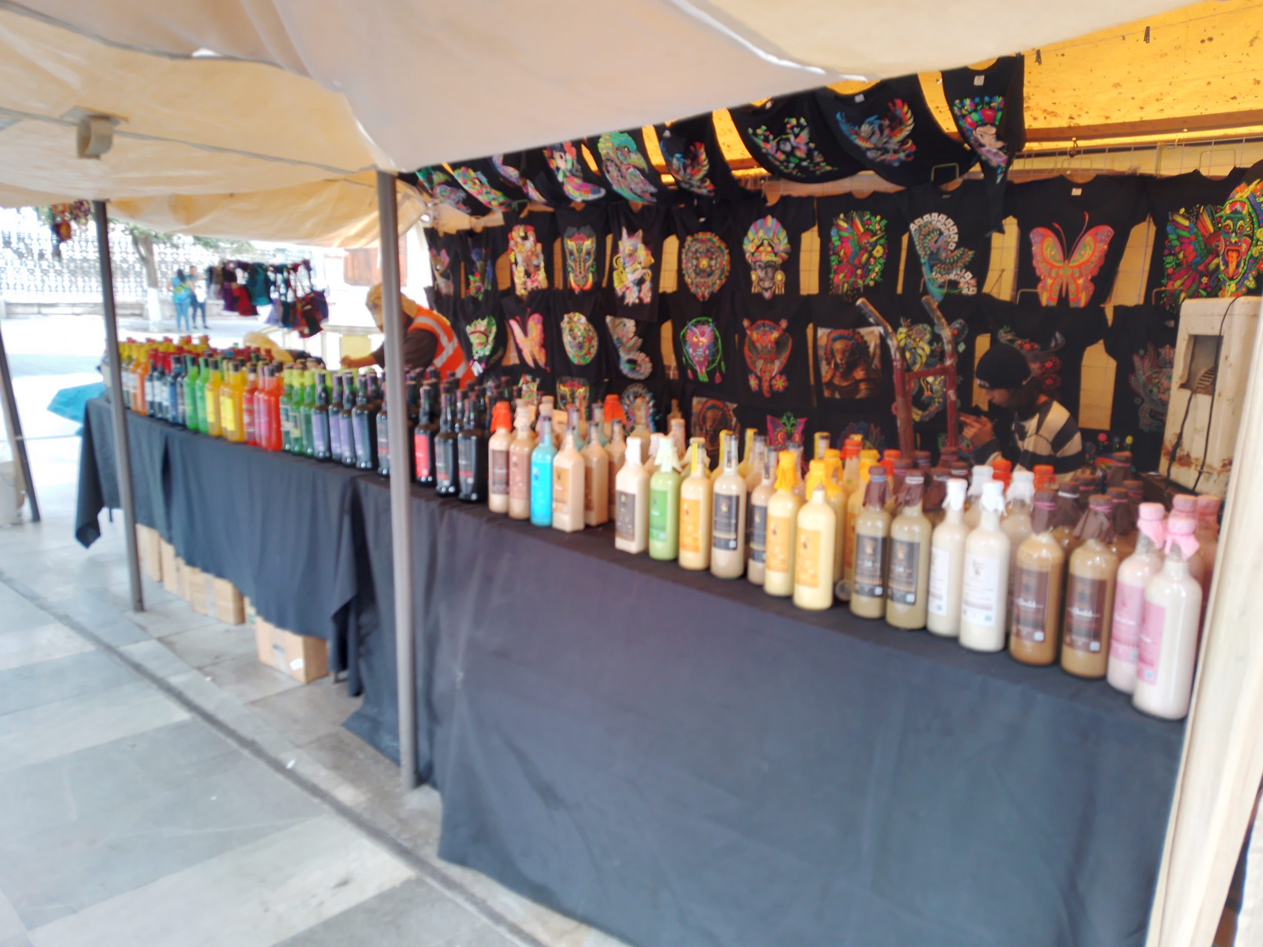 Entre los stands se encuentran artesanías rarámuri, ropa tejida, joyería hecha a mano, puestos de comida típica de la región, licores de diferentes sabores producidos en el estado, juguetes, entre otros productos más.
