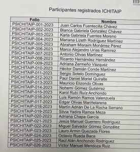 El legislador indicó que esta es la lista de las personas que buscarán ser comisionados del Ichitaip, aunque si fue reiterativo en que el número de personas puede incrementar porque el registro estuvo todo el día de ayer.