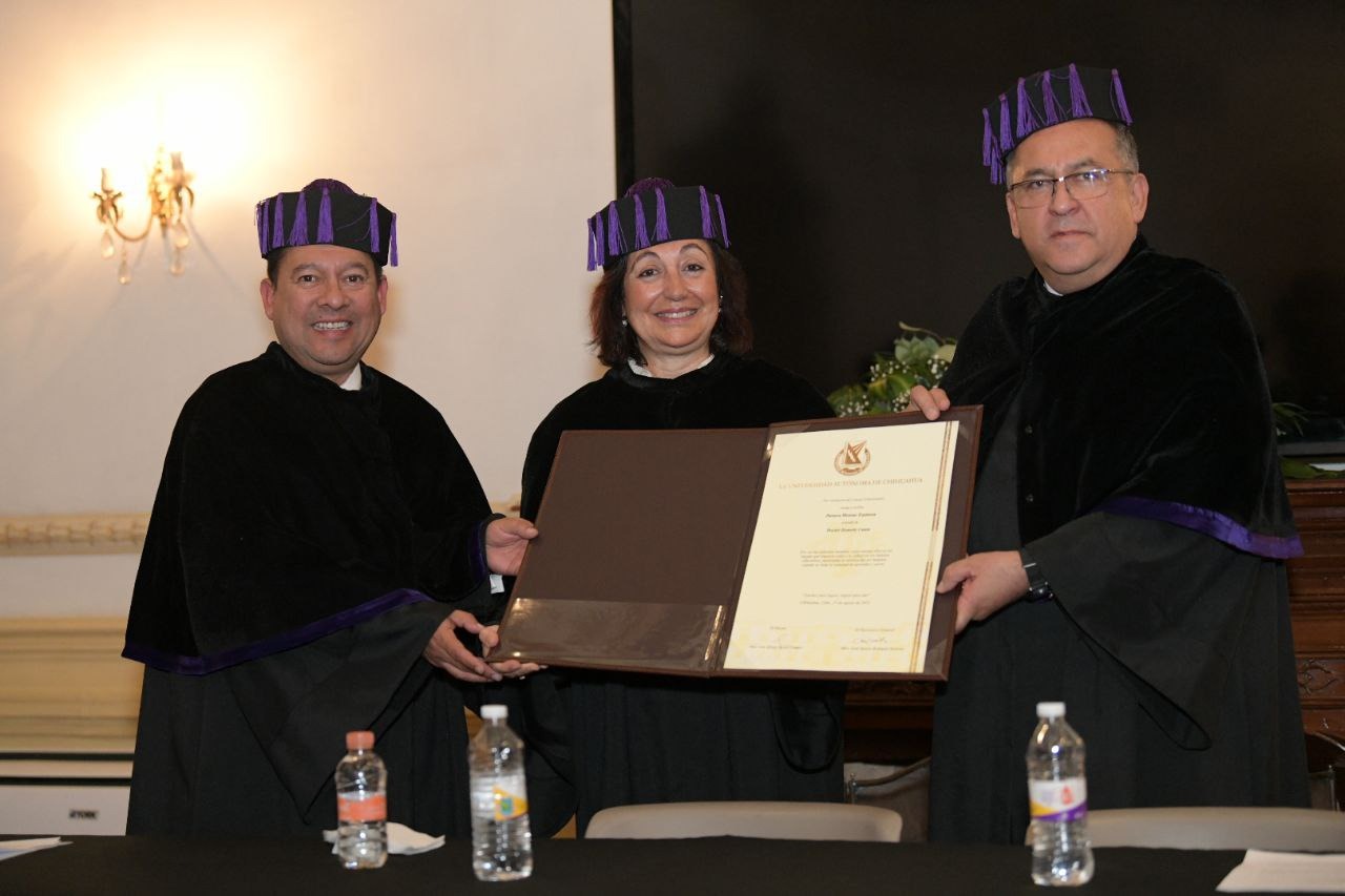 La Universidad Autónoma de Chihuahua (UACH) entregó el Doctorado Honoris Causa a la académica e investigadora Pastora Moreno Espinosa, en reconocimiento a su sobresaliente trayectoria científica, docente y académica.