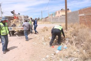 Derivado de reportes ciudadanos, personal de la citada dependencia llevan a cabo labores de limpieza en las principales calles de la colonia en cuestión, donde se realizó corte de hierba, pepena de basura y sopleteo.