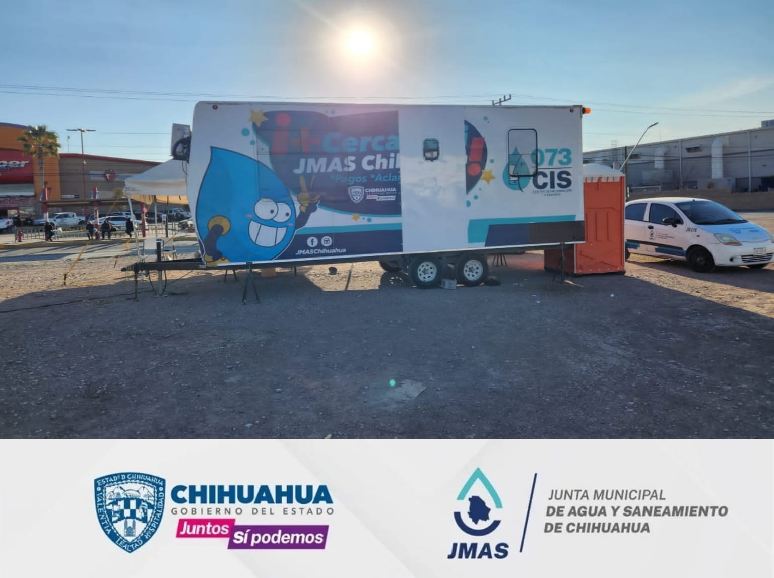 La sucursal móvil de la Junta Municipal de Agua y Saneamiento (JMAS) de Chihuahua permanecerá frente a Alsuper ubicado sobre la avenida Equus y su intersección con avenida Camino Real hasta el día 31 de enero, por lo que se invita a los vecinos de la zona a que acudan al módulo para aprovechar los beneficios que tendrán en lo que resta del presente mes.