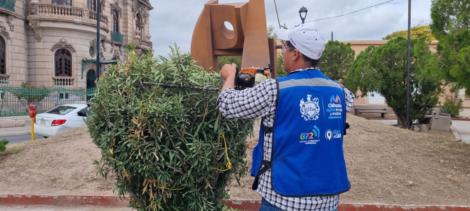 El Gobierno Municipal de Chihuahua, a través de la Dirección de Mantenimiento Urbano, continúa con las labores de poda de árboles y arbustos en más de 500 parques y 10 vialidades de la ciudad.