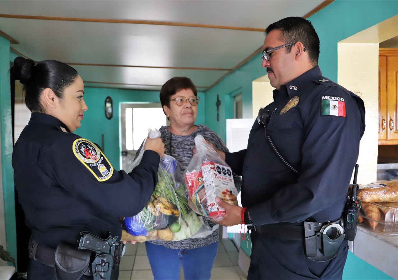 Entrega de despensas, ropa, medicamentos, sillas de rueda y hasta labores de limpieza y mantenimiento, son algunas de las actividades extraordinarias que los agentes municipales adscritos a la Policía de Proximidad realizan, sin descuidar sus labores de vigilancia preventiva que diariamente llevan a cabo en los diversos sectores de la ciudad.