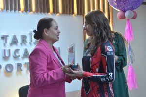 Durante la ceremonia, la Secretaría de Educación y Deporte también entregó un reconocimiento al profesor Fernando Meléndez Loya, mentor de Kamila y coach de los equipos de robótica del Tecmilenio.