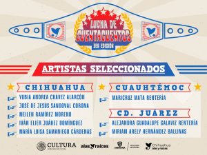 El listado de artistas incluye a: Yubia Andrea Chávez Alarcón, José de Jesús Sandoval Corona, Meilen Ramírez Moreno, Iván Elier Juárez Domínguez y María Luisa Samaniego Cárdenas, del municipio de Chihuahua.