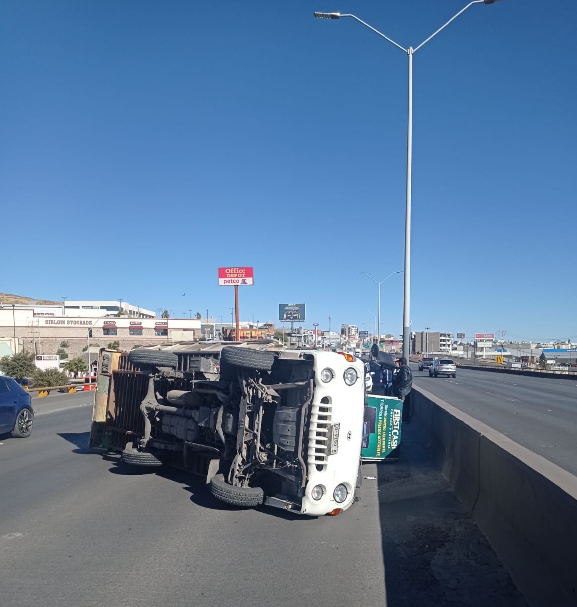 El camión Dodge H100 viajaba sentido Norte-Sur a la altura de Haciendas del Valle las fuertes ráfagas de viento lo acostaron bloqueando el carril central y el izquierdo ocasionando un congestionamiento vehícular haciéndose largas filas para circular.
