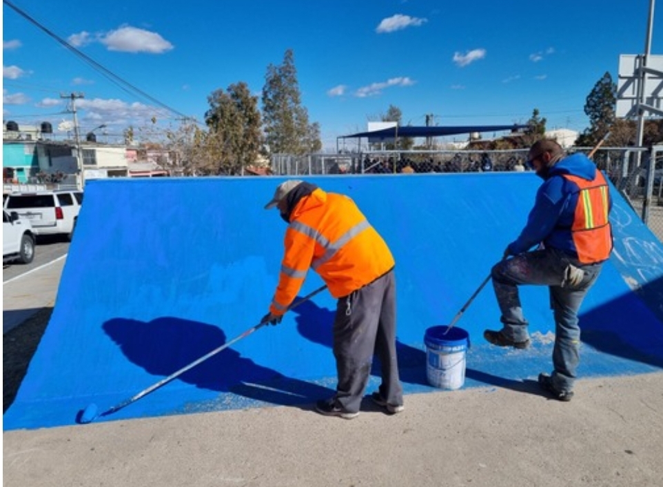 La atención constó del corte de pasto, retiro de basura, escombro y arrastre de tierra, además de aplicar pintura en el equipamiento de cada parque.