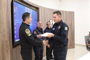 La Dirección de Seguridad Pública Municipal, hizo entrega de estímulos económicos a 32 policías y bomberos que fueron seleccionados por miembros de su respectiva Comisión del Servicio Profesional de Carrera, con la intención de reconocer su actuación destacada y fortalecer la identidad institucional.