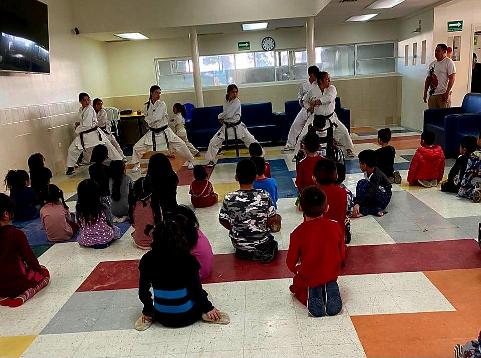 En apoyo y atención al derecho humano de las niñas y niños que viven en la Casa Cuna del DIF Estatal, de disfrutar de actividades que impulsen su sano esparcimiento, las y los infantes de dicho espacio reciben clases de Karate, a fin de motivarles el amor por el deporte y la disciplina.