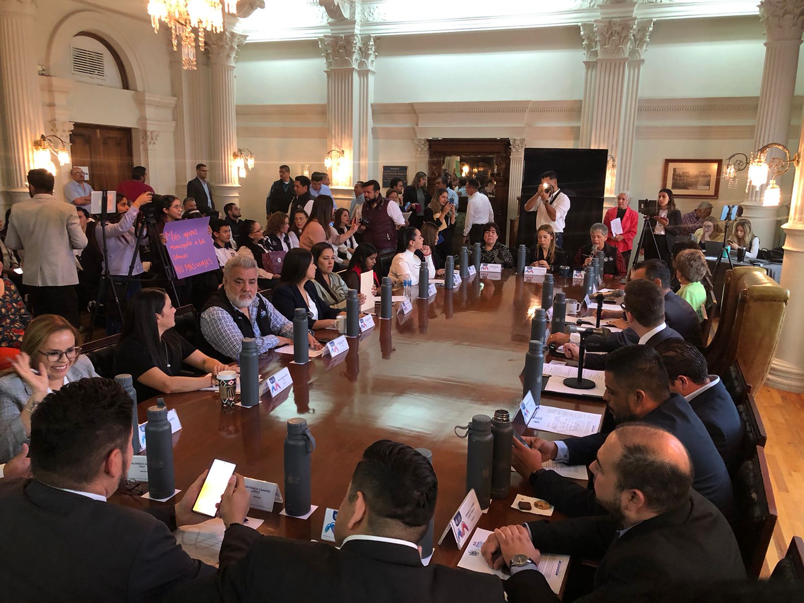 El grupo de inconforme, encabezado por el diputado de Morena, Óscar Castrejón, irrumpió en la sesión y reclamó a los ediles el gasto realizado en un viaje del cual exigieron resultados.