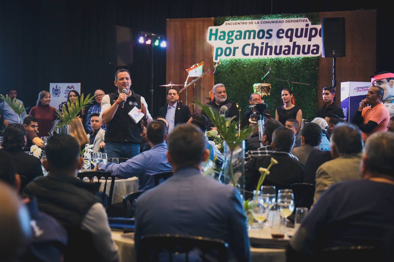 El alcalde de Chihuahua, Marco Bonilla, se reunió con la comunidad deportiva de la ciudad para reconocer y felicitar los logros obtenidos durante el año pasado en distintas competiciones locales, nacionales e internacionales al poner en alto a la Capital no solo por sus triunfos sino también por su dedicación y esfuerzo.