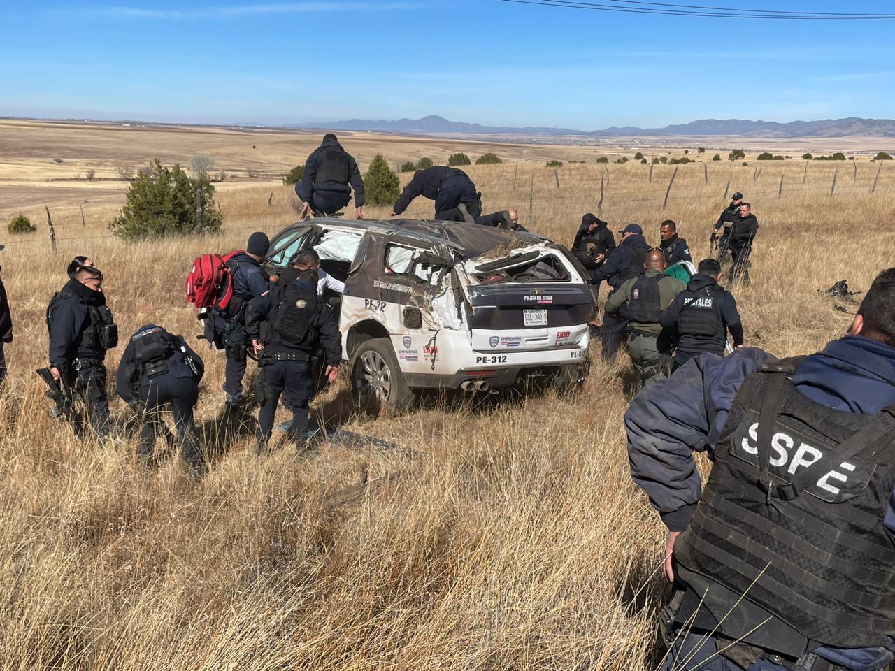 El personal de la Policía del Estado circulaba a bordo de la unidad Chevrolet Suburban con número económico PE-312 con destino al municipio de Bocoyna con el objetivo de reforzar el operativo de seguridad en aquella zona tras un enfrentamiento entre delincuentes y personal de la SSPE.