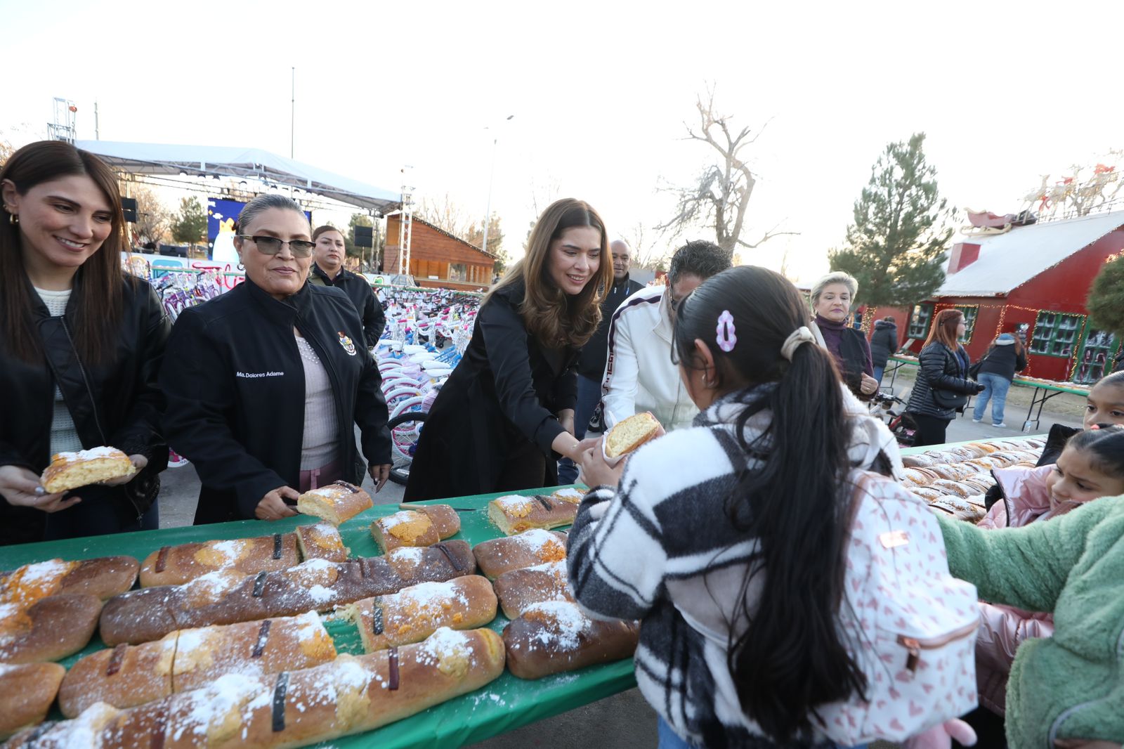 Esta tarde, cientos de juarenses acudieron al parque DIF, ubicado en la avenida Heroico Colegio Militar, para partir la rosca gigante por Día de Reyes.