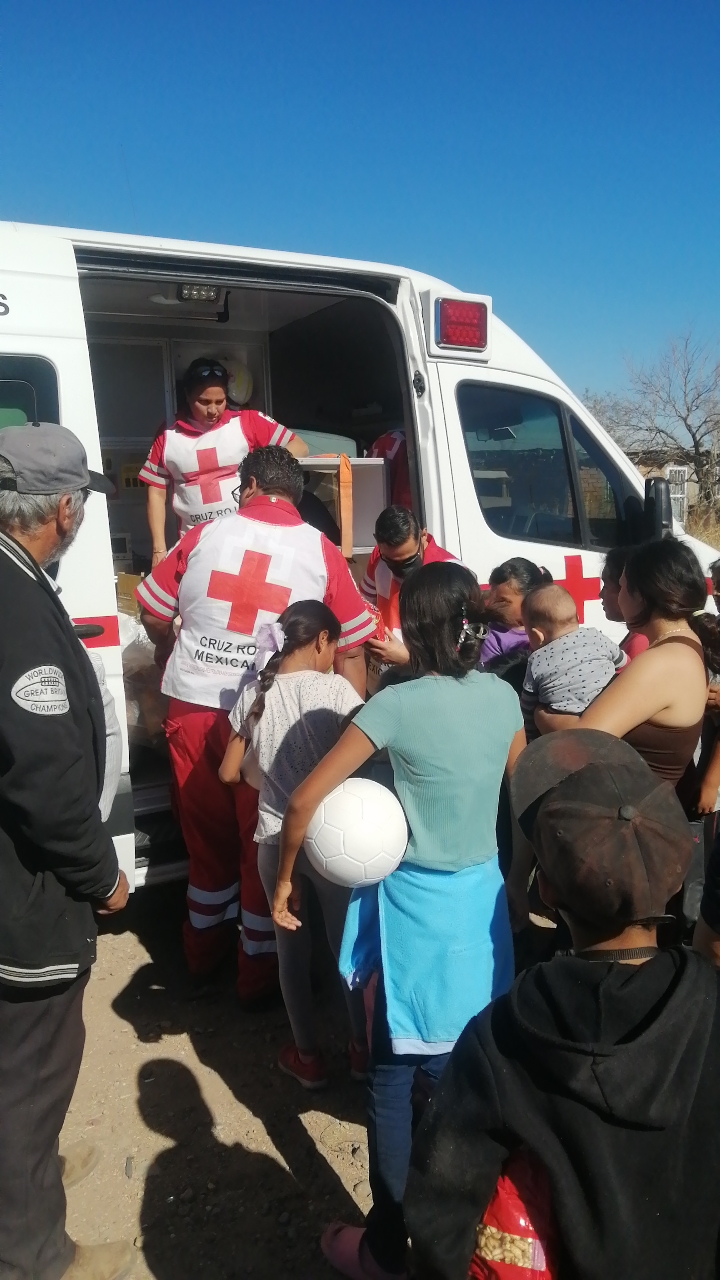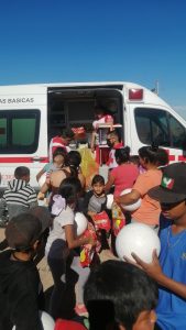 Luego de reunir juguetes, dulces y balones deportivos, los paramédicos se trasladaron a bordo de las ambulancias a visitar a niños de la periferia, en esta ocasión fue la zona Ladrillera Sur, ubicada sobre la Vialidad Juan Pablo II, en el entronque con la carretera al Cereso.