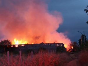 Elementos del Cuerpo de Bomberos cuentan con más zd tres horas tratando de controlar las llamas las cuales están consumiendo tarimas, maderas y todo tipo de flamante dentro de ésta fábrica.