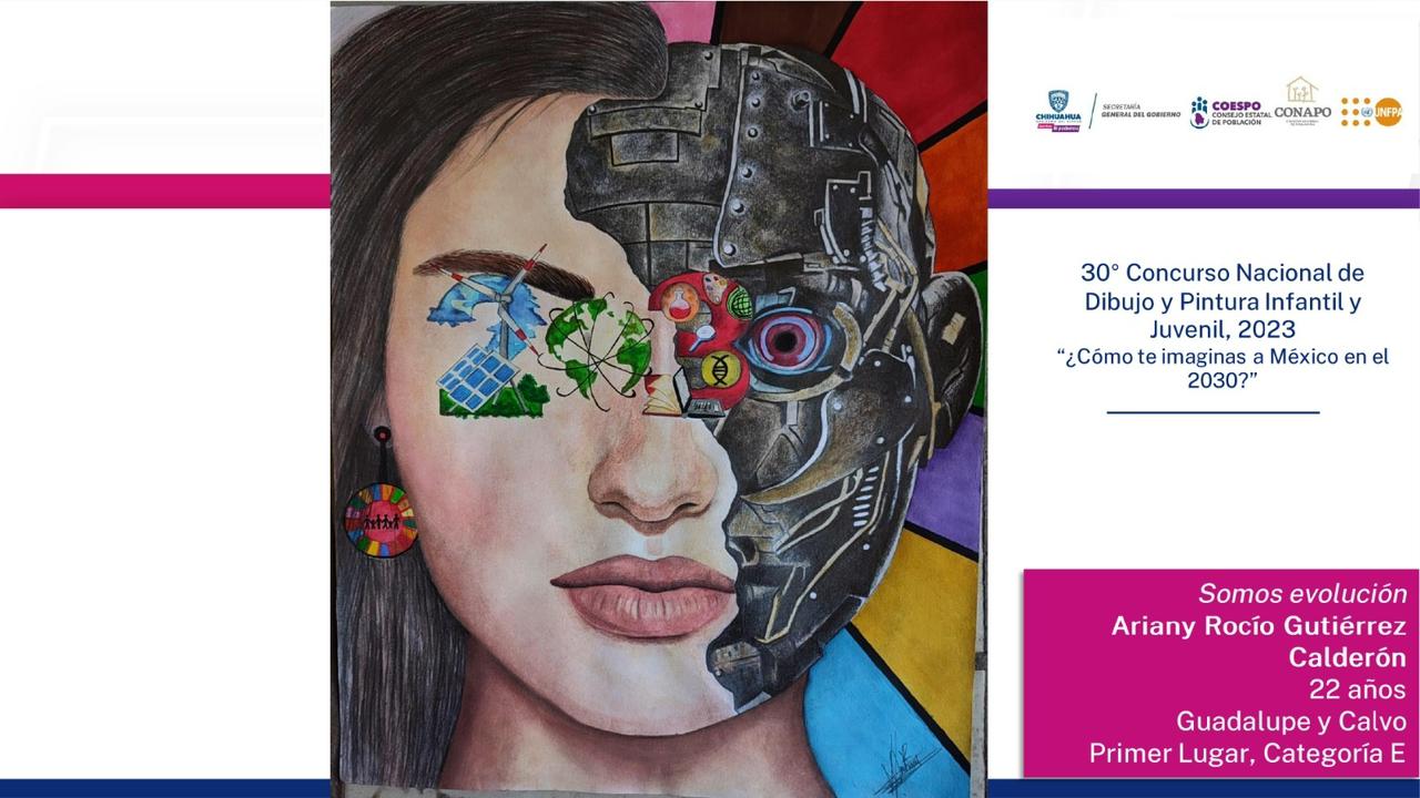 Los chihuahuenses Cinthia Nolasco, Jesús Maldonado y Ariany Gutiérrez forman parte de los ganadores del 30º Concurso Nacional de Dibujo y Pintura Infantil y Juvenil 2023, con el tema: “¿Cómo te imaginas a México en el 2030?”, organizado por la Secretaría General del Consejo Nacional de Población (SG Conapo), y el Fondo de Población de las Naciones Unidas (UNFPA).