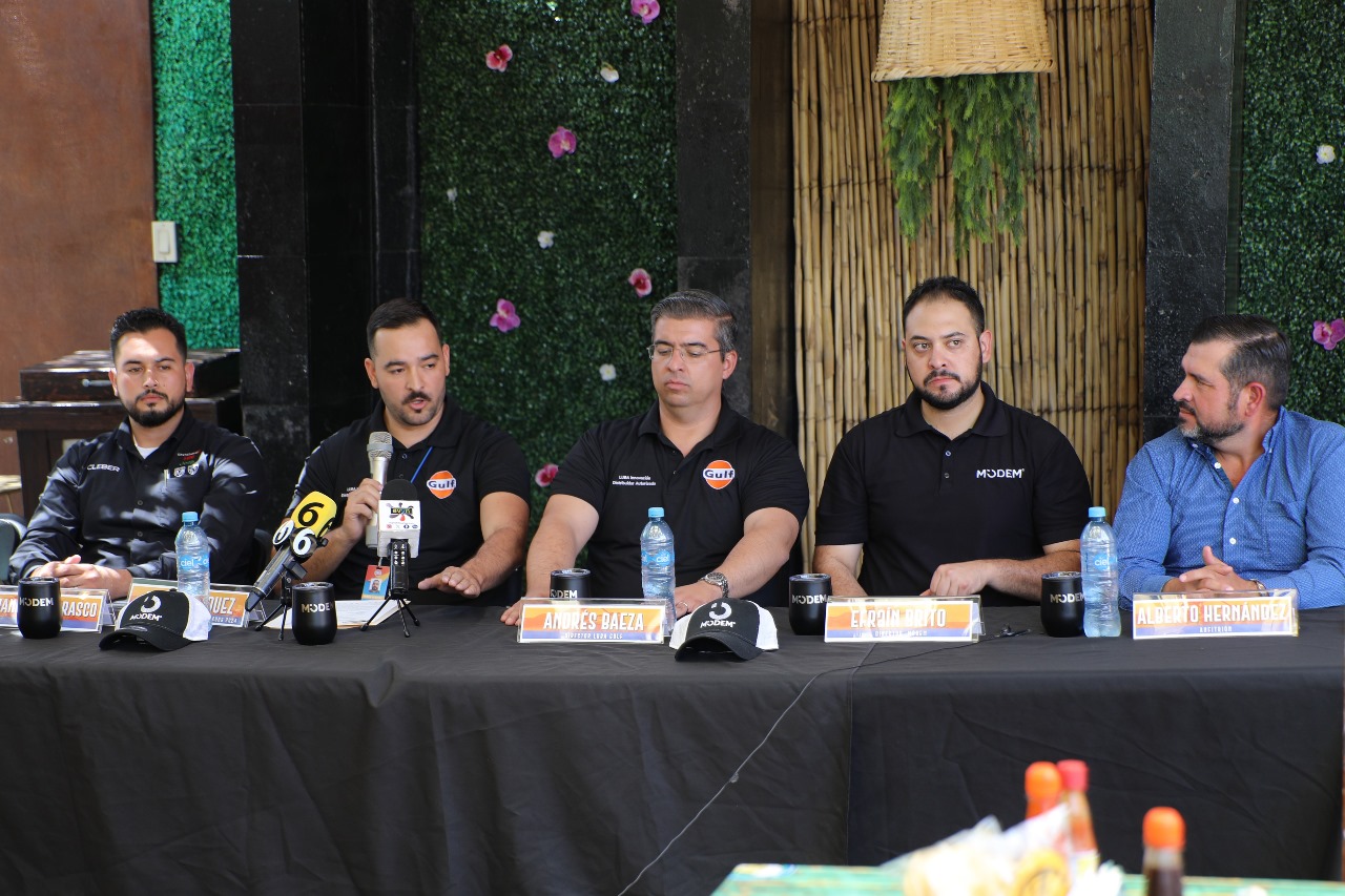 En la rueda de prensa, estuvieron presentes las autoridades del evento, como el Director de Módem Comunicación, Efraín Brito, el Director LUBA GULF, Andrés Baeza, el Director Operativo Ruta Módem Ojo Laguna 2024, Rubén Vázquez, el Presidente Seccional de El Sauz, Miguel Tarango, de Jeep Cleber, Rolando Torres, así como, Aldo González, Anfitrión del evento.