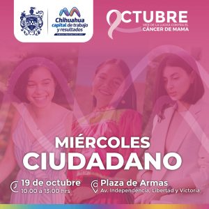 Para brindar una mejor atención a las familias chihuahuenses, el Gobierno Municipal, a través de la Dirección de Desarrollo Humano y Educación, invita a realizar gestiones o exponer sus necesidades en el Miércoles Ciudadano, que se llevará a cabo el próximo 19 de octubre en la Plaza de Armas, de 10:00 a 13:00 horas.