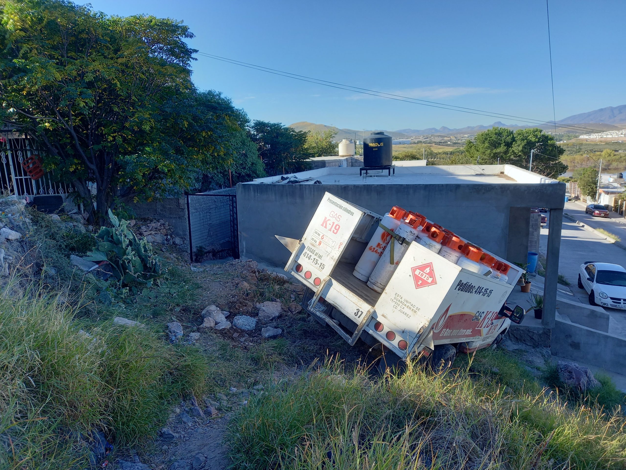 El accidente fue cuando el operador de dicha unidad acudió al domicilio de rio Blanco y 120 a dejar un cilindro de gas sin embargo por una falla mecánica la camioneta se fue a la deriva por un barranco la cual terminó su marcha contra una vivienda.