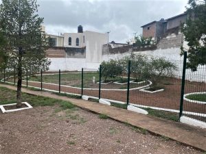 También, se plantaron 14 pinos y se elaboraron guarniciones para pozas a los árboles existentes; así como se concluyó con el circuito para perros, delimitándolo por medio una reja de acero de 45 metros lineales, y se colocó una puerta para dar un acceso a esta área.