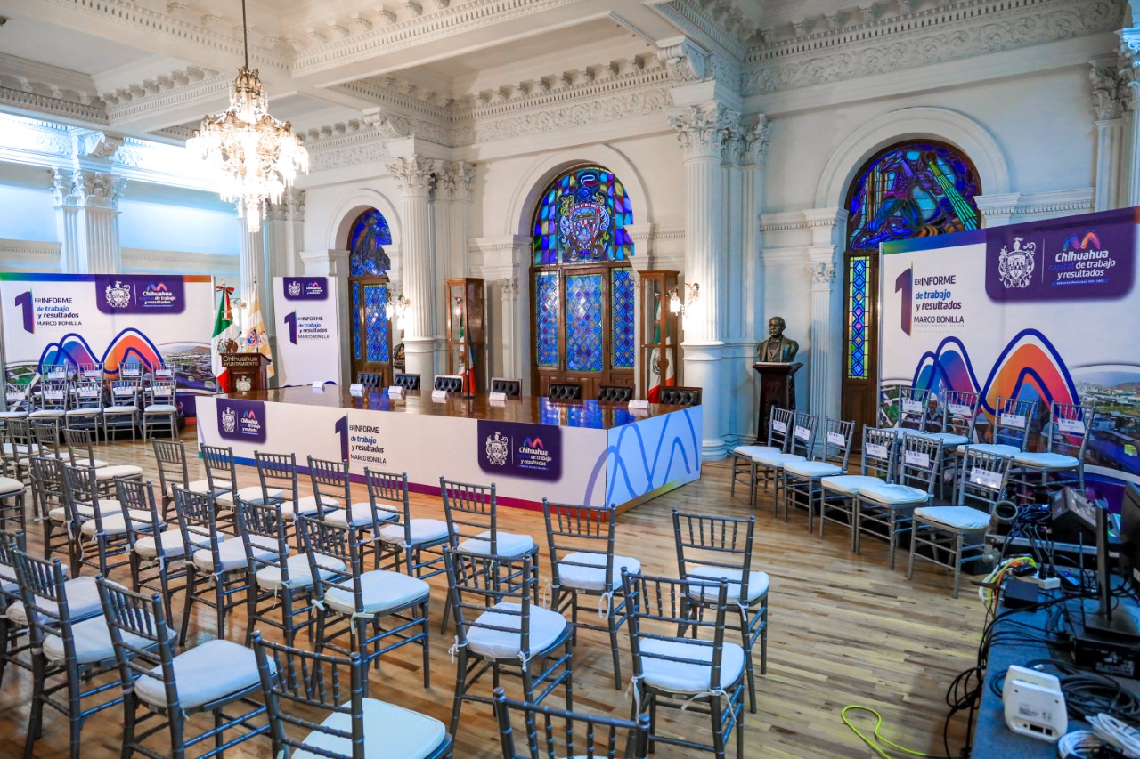 El alcalde de Chihuahua, Marco Bonilla Mendoza, llevará a cabo la entrega de su primer Informe de Actividades de la administración 2021 -2024, este lunes 5 de septiembre en sesión solmene de Cabildo en punto de las 11 horas.