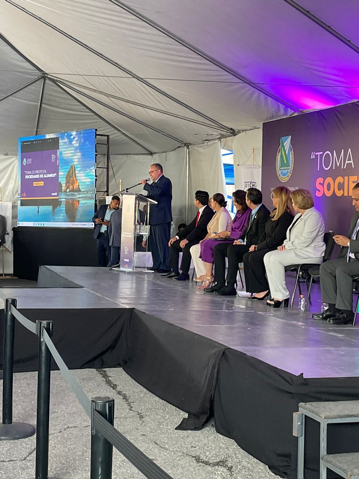 El rector de la Universidad Autónoma de Chihuahua Luis Rivera Campos, llevó a cabo la toma de protesta de las sociedades de alumnos de distintas facultades.