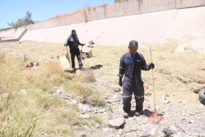 Con el objetivo de mantener una buena imagen urbana y prevenir acumulación de basura en afluentes de agua, el Gobierno Municipal, a través de la Dirección de Servicios Públicos Municipales, trabaja en la limpieza de la parte canalizada del arroyo el Mimbre, ubicado al norte de la ciudad.