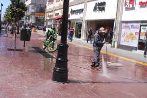Con una cobertura en atención del primer cuadro de la ciudad de 22 horas al día, los siete días de la semana, personal de la dependencia, trabaja de forma permanente en tener el Centro Histórico de la capital del estado limpio con acciones como barrido manual, barrido mecanizado, recolecta de cepos, lavado a presión, entre otros.
