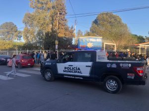 Chihuahua, Chih. 09 de abril de 2024.- Con el regreso a clases de miles de estudiantes a planteles de nivel básico del municipio, agentes de la Policía Escolar de la Dirección de Seguridad Pública reforzaron sus labores en instituciones educativas, con el fin de brindarles vigilancia a ellos y sus docentes durante las entradas y salidas, así como en algunos de los trayectos más concurridos.